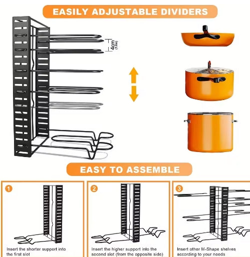 organisateur de casseroles :Optimisez votre cuisine grâce à cet organisateur de casseroles robuste et élégant, conçu pour garder vos ustensiles parfaitement rangés. Réglable et polyvalent, il s’adapte à toutes les tailles de poêles, couvercles et casseroles pour un espace toujours ordonné. Facile à installer, il transforme instantanément vos placards en un espace fonctionnel et accessible au quotidien.